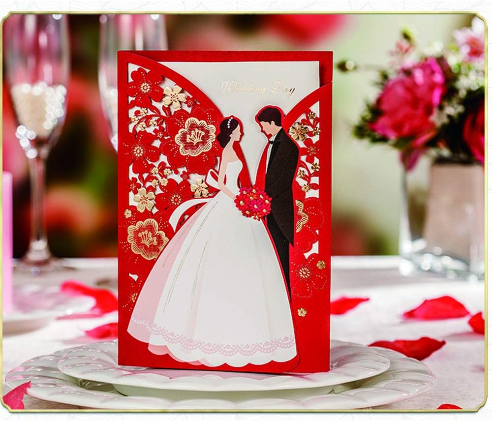 Wishmade 20pcs Carte Dinvitations De Mariage Rouge Avec La Conception De La Flore Et Des Enveloppes De Mariee Et De Marie Pour Les Invitations De Douche Nuptiale De Mariage Decorations Et Accessoires