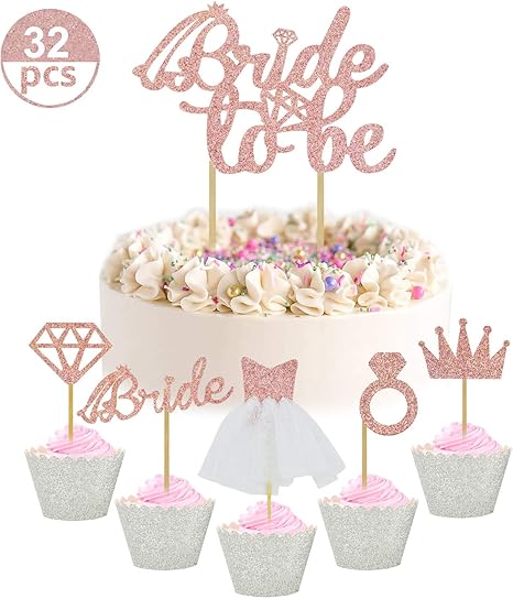 Vipbuy 32 Pack Mariee Pour Etre Cake Toppers Rose Gold Glitter Diamond Ring Couronne 3d Robe De Mariee Mariee Cupcake Toppers Decorations Pour Douche Nuptiale Poule Partie Fiancailles Amazon Fr Cuisine Maison