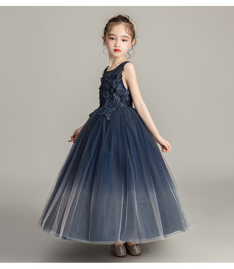 Acheter Robe De Princesse Costumes De Mariage Des Filles Dete Pour Les Enfants De Fils De Soie Bourgeon Veste Jupe Longue En Europe Et En Amerique Du Soir Robe Bleu Fonce De