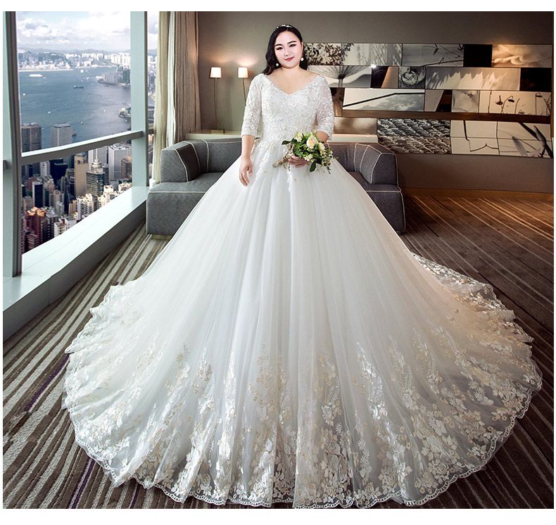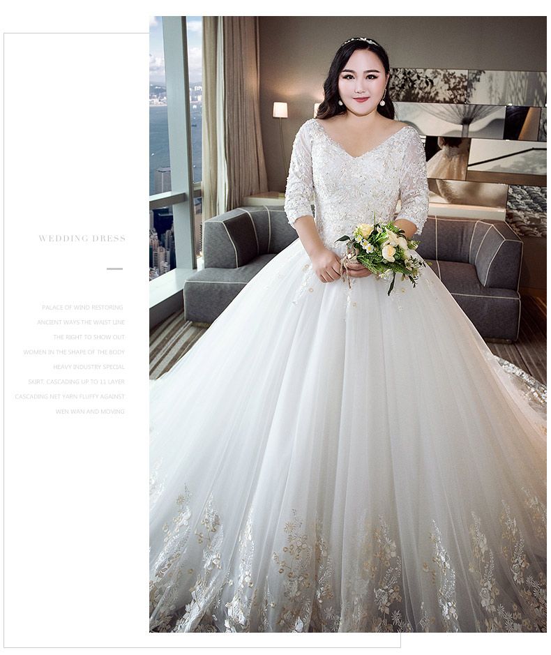 Acheter Taille 2019 Plus Pour Les Femmes De Graisse Robe De Mariee Xl 4 Xl Special Vous Dans Le Mariage Beau Cou V Dentelle A Manches Longues En Robe De Mariee De