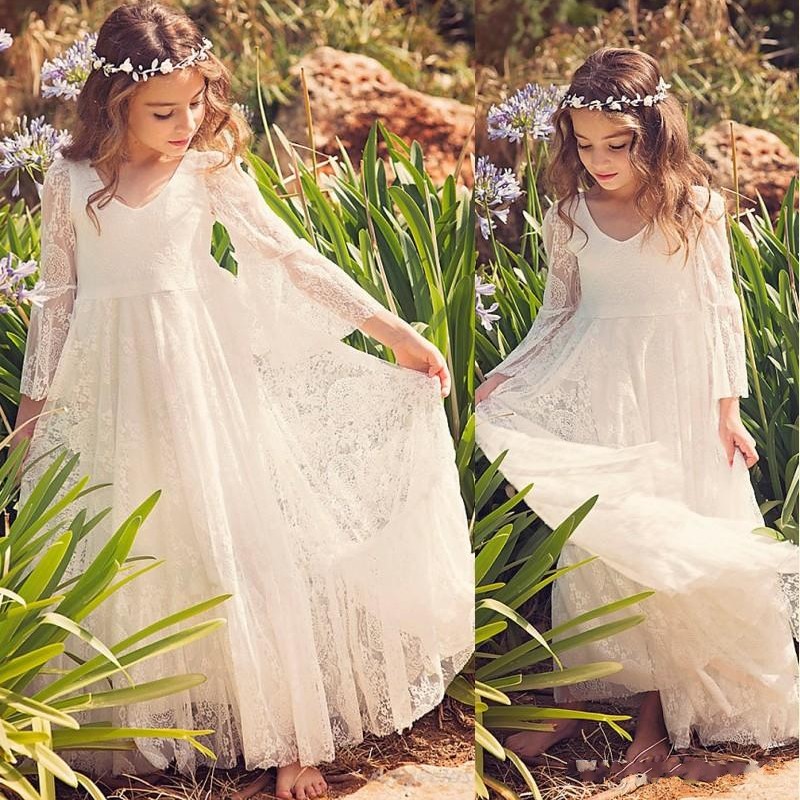 Princesse Vintage Arabe Fleur Fille Robes Pour Plage Mariage Col Transparent Cherie Manches Longues Enfants Robes De Reconstitution Historique Aliexpress