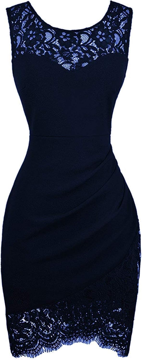 Robe De Soiree Sexy Sans Manches Avec Col Rond En Dentelle Bleu Taille S Amazon Fr Vetements Et Accessoires