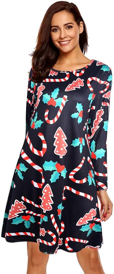 Winjin Noel Robe Femme Vintage Robe Noel Robe De Soiree Robe De Bal Manches Longues Imprime Bonhomme De Neige Pere Noel Tunique Cocktail Mini Robe Robe Chic De Club Costumes De Noel