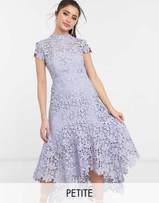 Forever New Petite Robe Longue En Dentelle A Ourlet Asymetrique Avec Noeud Au Dos Bleu Pastel Asos