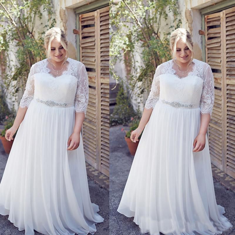 Acheter Robes De Mariee Grande Taille Avec Manches A Line En Mousseline De Soie Et Dentelle Nouveautes Grandes Robes De Mariee Pour Femmes Faites Sur Mesure Robes De Soiree De 107 29