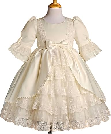 Dressvip Vintage Bebe Fille Robe De Bapteme Princesse De Ceremonie Dentelle Enfant Manche 3 4 Royale Avec Nœuds Amazon Fr Vetements Et Accessoires