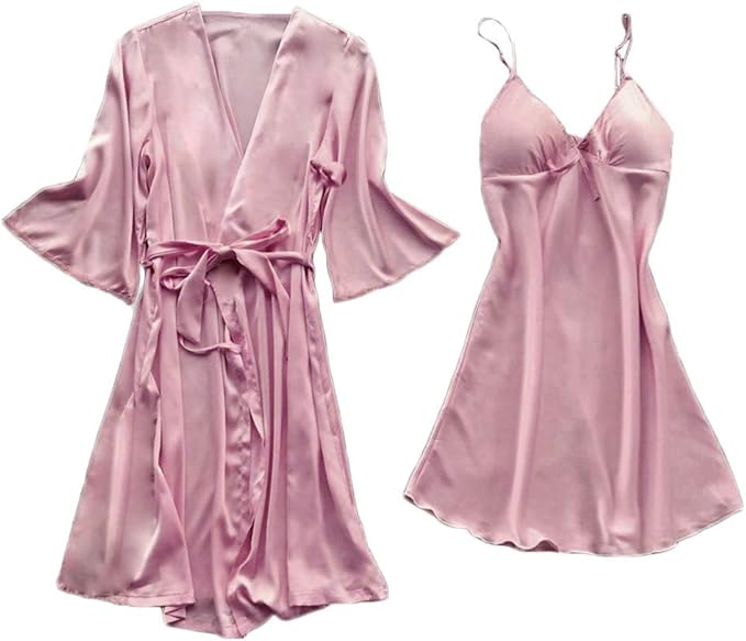 Boluobao Robe De Chambre Satin Femme Sexy Legere Courte Peignoir Femme A Fermeture Fantaisie Undiz Douce Vetements De Nuit 2pc Xxxl Rose Amazon Fr Vetements Et Accessoires
