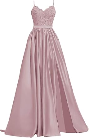 Apxpf Robe De Soiree Longue En Satin Avec Poches Pour Femme Rose 40 Amazon Fr Vetements Et Accessoires