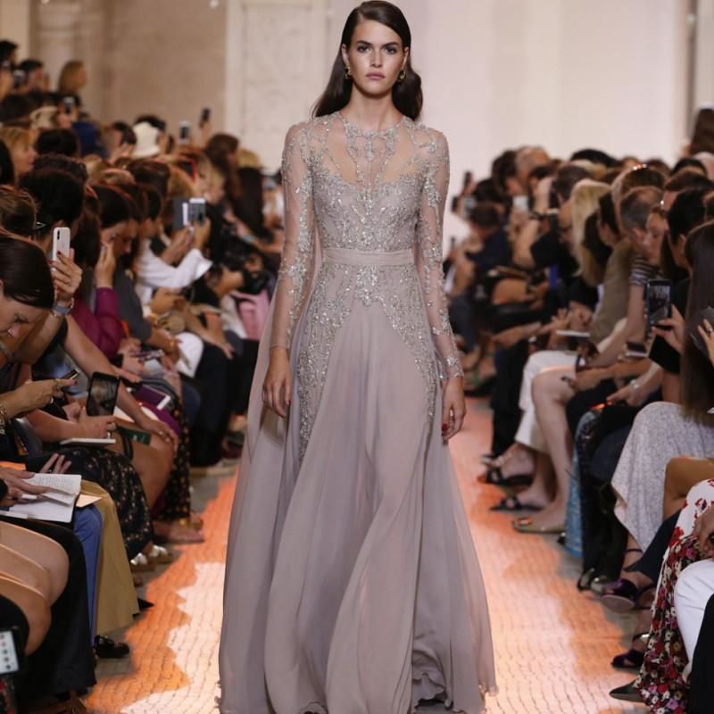 Acheter Eliesaab 2020 Blush Rose Robes De Bal Sheer Manches Longues En Mousseline De Soie Formelle Robes De Soiree En Dentelle Appliqued Flowing Parti Robe Pailletee De 120 21 Du Dresstop Dhgate Com