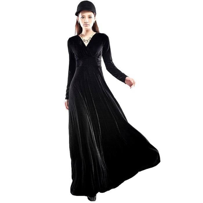 Automne Hiver A Manches Longues Velours Robe De Soiree Dames Decontractee Robe Noir Noir Achat Vente Robe Cdiscount