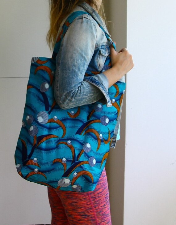 Sac Cabas Imprime Africain Bleu Pliable Etsy