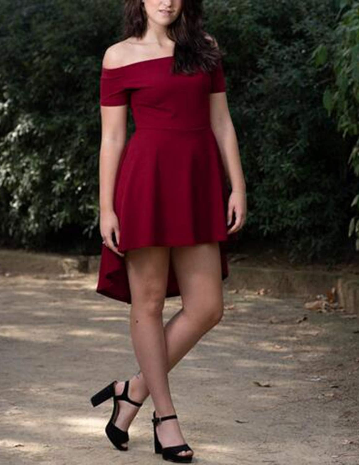 Carinacoco Femmes Robe De Soiree Du Club Mariage Manche Courte Epaule Off Skater Mini Jupe Robes De Soiree Vetements Soiree
