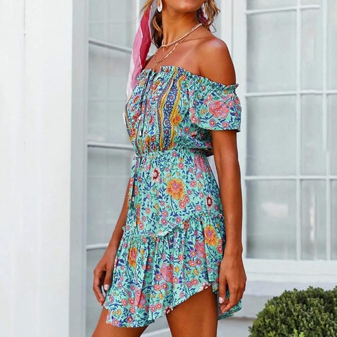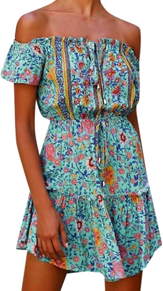 Mini Robe Decontractee Imprime Floral Style Ethnique Boheme Robe Dete Sans Manches Pour Femme Octopusir Epaule Denudee Vetements Femme