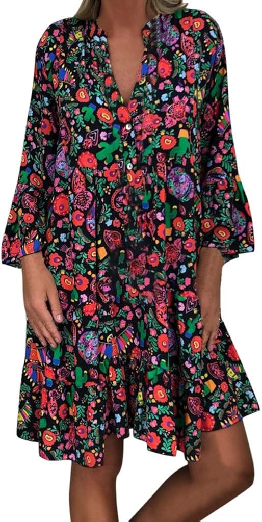 Zanzea Mousseline De Soie Vintage Mini Robe Pliable A Manches Longues A Lacets O Cou Droite Droite Kaftan Femmes Automne Casual Mode Robe Details Et Prix Au Maroc Vendo Ma