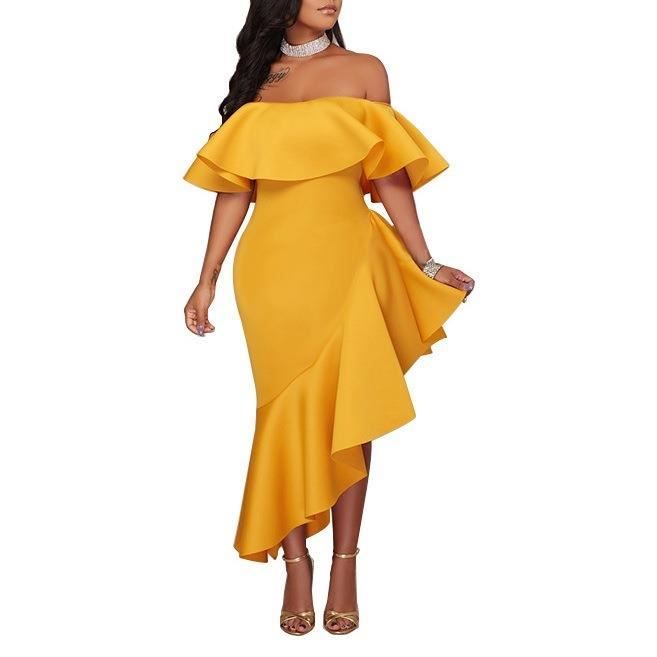 Liooil 2021 Ete Bleu Royal Hors De L Epaule Midi Robe Moulante Sexy Volants Sans Bretelles Femmes Africaines Robes De Fete De Celebrite Aliexpress