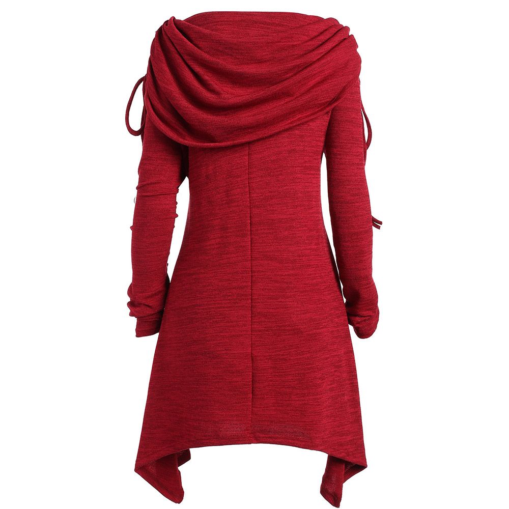 Zanzea Mousseline De Soie Vintage Mini Robe Pliable A Manches Longues A Lacets O Cou Droite Droite Simple Kaftan Femmes Automne Casual Mode Robe Robe Vin Rouge Details Et Prix Au Maroc