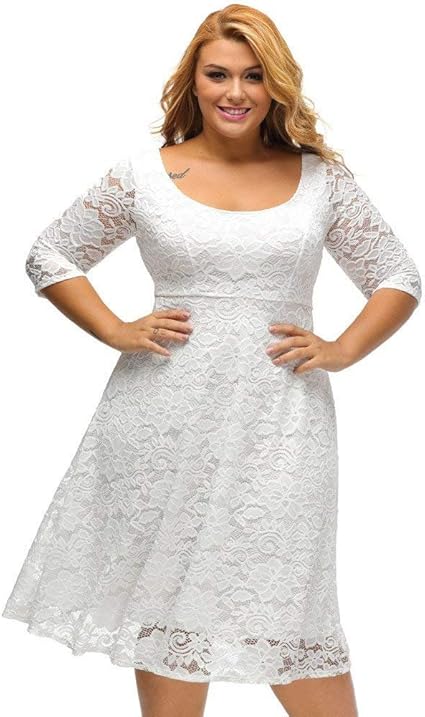 Naerfb Les Femmes Grande Taille Sortir Formelle Travail Partie Dentelle Elegante Robe Swing Col Rond Manches Trois Quarts Taille Haute Amazon Fr Sports Et Loisirs
