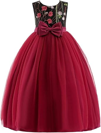 Feicuan Robe De Soiree Pour Fille Robe De Bal Formelle De Princesse De Mariage Robe De Demoiselle Dhonneur Noeud 4 14 Ans Fille Robes