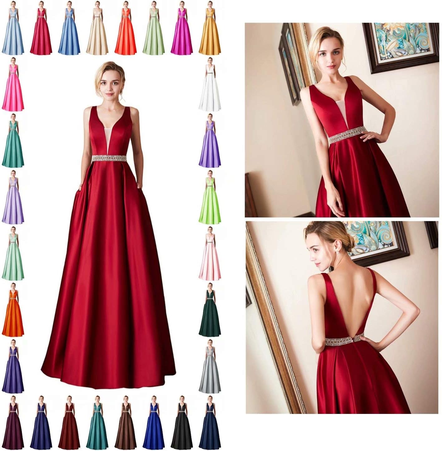 Fankeshi Robes De Bal Longues Pour Femme En Satin De Soiree Formelle De Demoiselle D Honneur