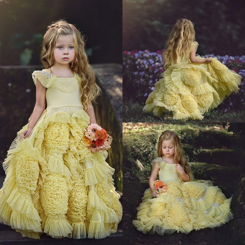 Acheter Vintage Jaune Fleur Filles Robes Pour Mariage 2018 Dentelle Applique Ruffles Enfants Vetements De Ceremonie Vetements De Pageant De Longue Plage Plage Fille De 65 45 Du Manweisi Dhgate Com