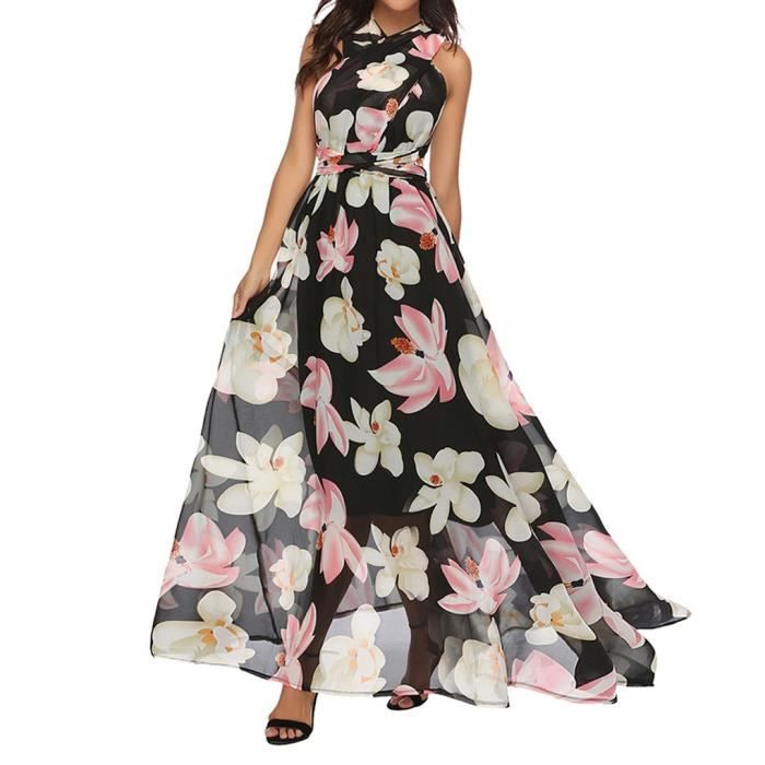 Robe Maxi Longue En Mousseline Imprime A Fleurie Dos Nu Sans Manches Boho Plage Blanc Robe Longue Robes