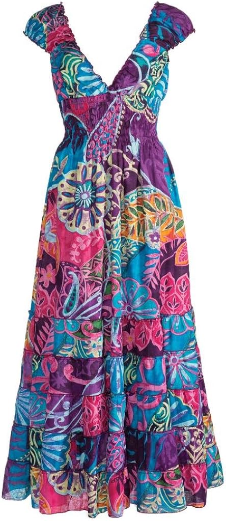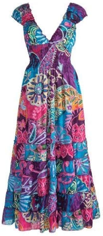 Robe Ample Motifs Feuilles Fleurs Vert Boheme Boho Hippie Coklico