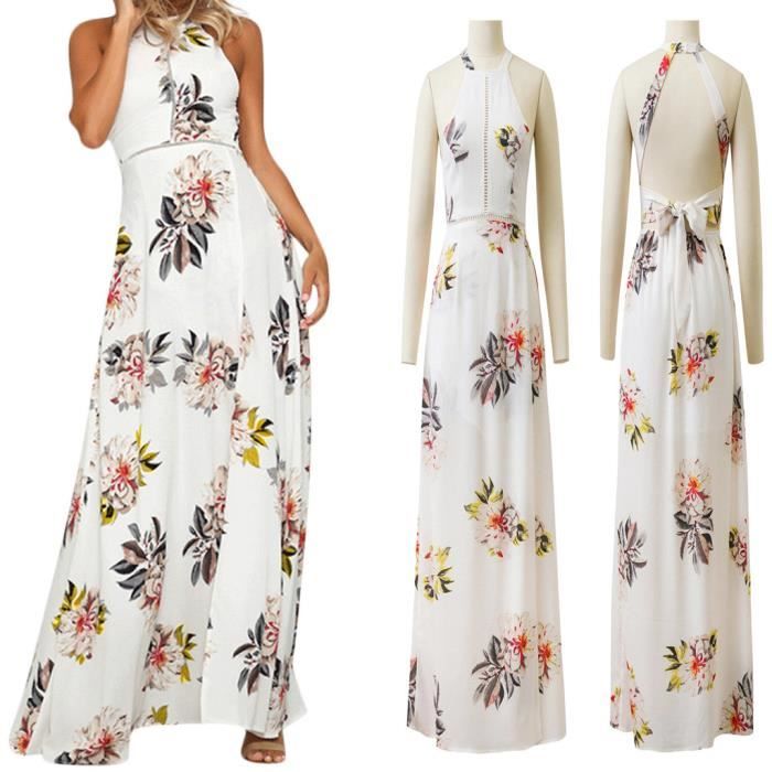 Lonupazz Maxi Robe Longue Boheme Chic Imprimee Fleurs Femme Ete Robes De Plage Sundress Floral Print Dress Sans Manche Amazon Fr Vetements Et Accessoires