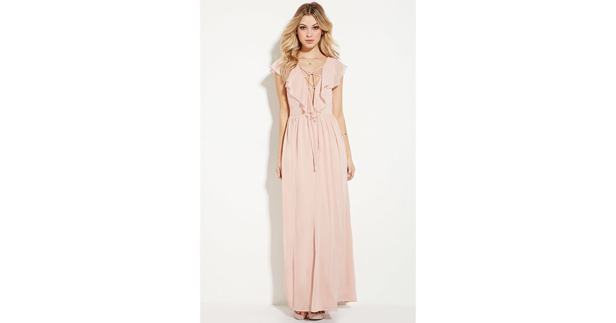 Forever 21 Ruffled Chiffon Maxi Dress In Blush Pink Lyst