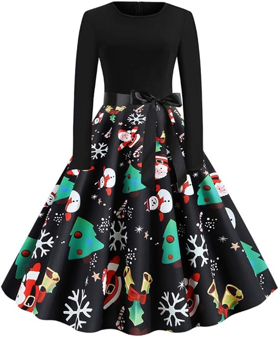 Jerfer Belle Robe De Noel Femmes Robe De Soiree De Soiree A Manches Longues Vintage Des Femmes Au Foyer De Noel Des Annees 1950 Amazon Fr Vetements Et Accessoires