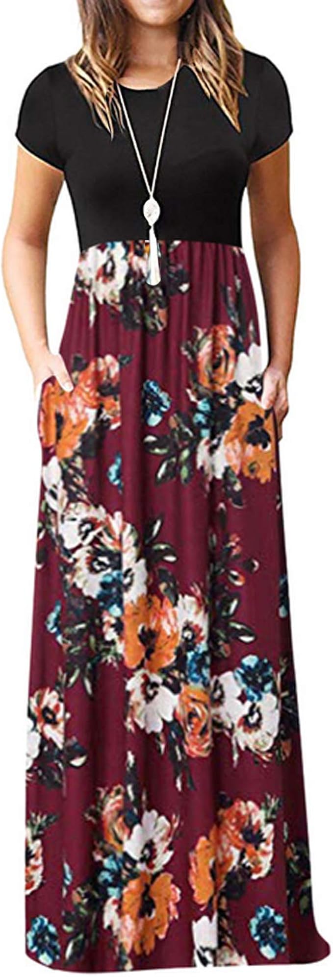 Yipineu Robe Longue Femme Manche Courte Ete Robe De Plage Femmes Robe De Soleil Maxi Grande Taille S Xxl Casual Femme