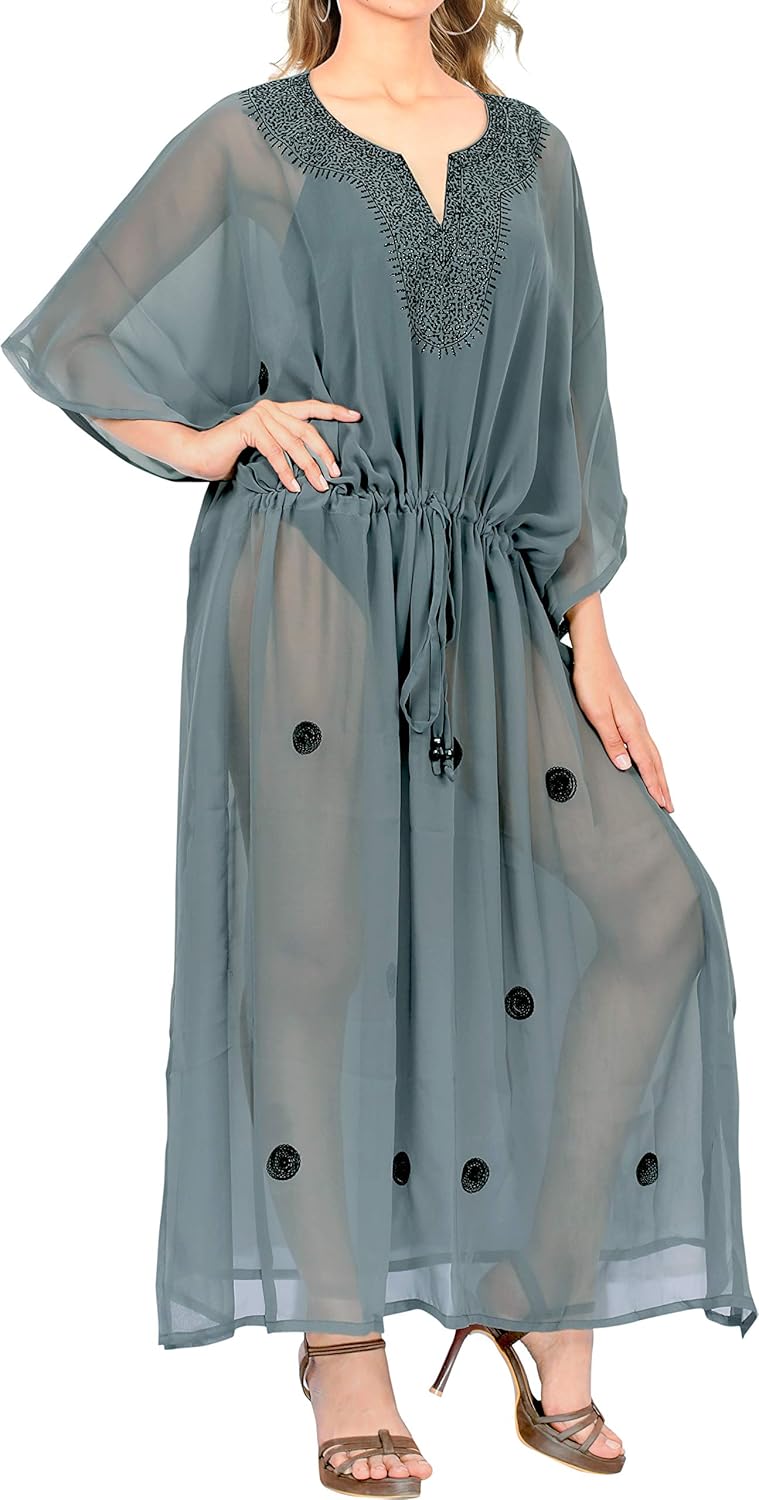 La Leela Femmes Rayonne Longue Kaftan Tunique Kimono Brode Grande Taille Robe Pour Loungewear Vacances Vetement De Nuit Plage Tous Les Jours Haut Robes Maxi Caftan Bc