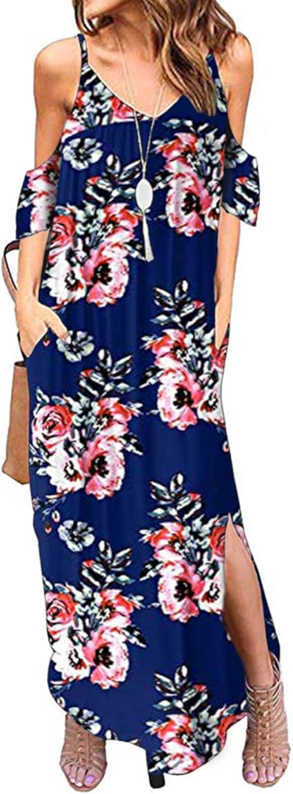 Style Dome Femme Robe De Plage Longue Maxi Florale Imprimee Boheme Grande Taille Ete Sans Manche Chic Col V Pour Vacance B07rzmkxpq