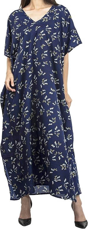 La Leela Femmes Coton Longue Kaftan Tunique Kimono Batik Grande Taille Robe Pour Loungewear Vacances Vetement De Nuit Plage Tous Les Jours Haut Robes Maxi Caftan Gi Chemises De Nuit Vetements