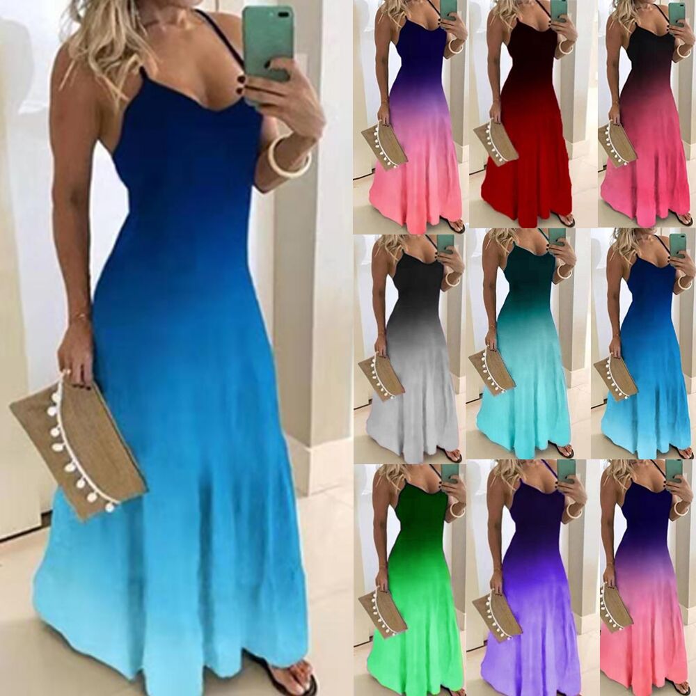 Poachers Robe Longue Femme Femme Robe De Plage Ete Degrade Elegante Maxi Robe Longue De Soiree Grande Taille Col Rond Sans Manche Robe Chic Clubbing Vetements