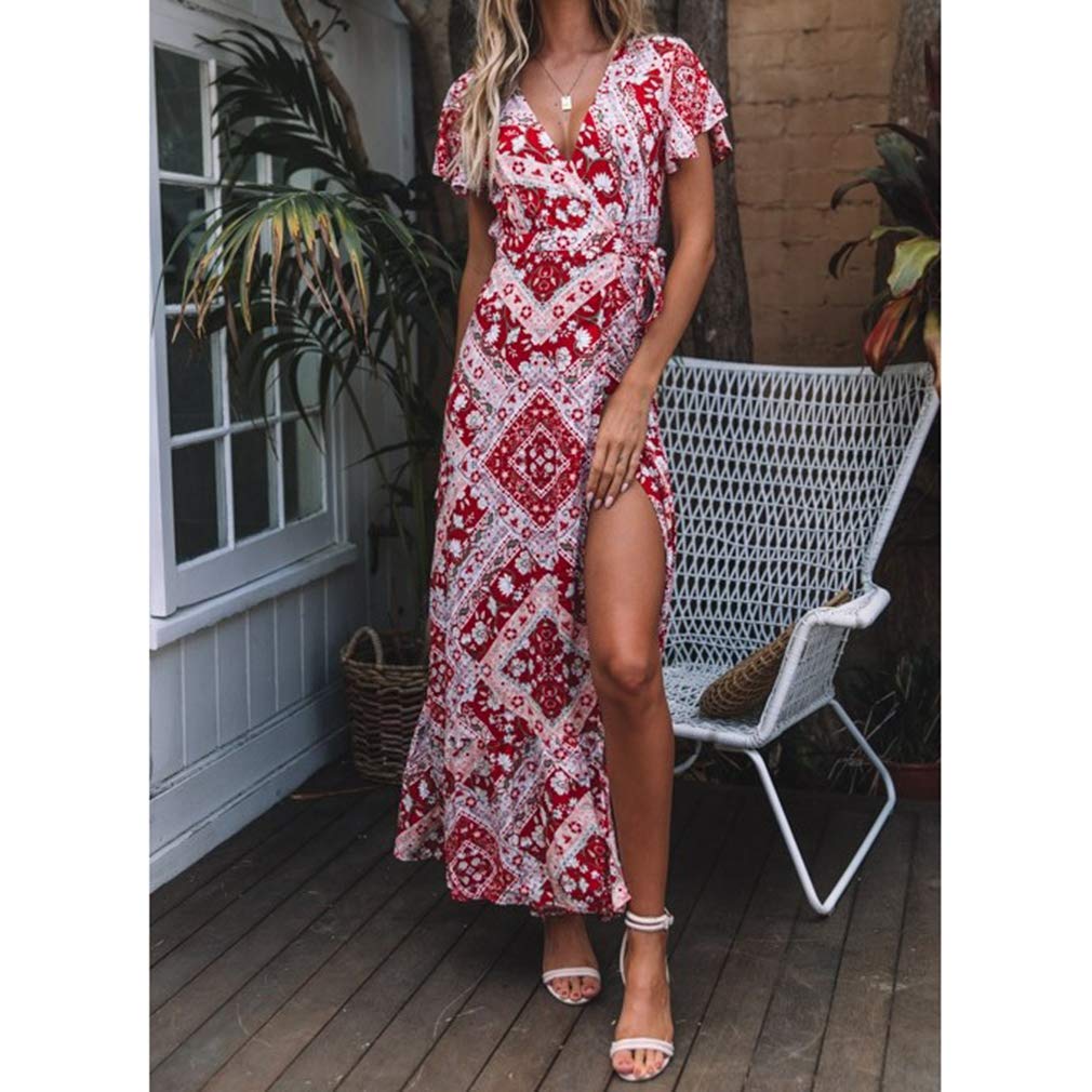 Reooly Femmes Summer Boho Casual Imprime Maxi Party Robe De Plage Pour Robe Dete Vetements Femme