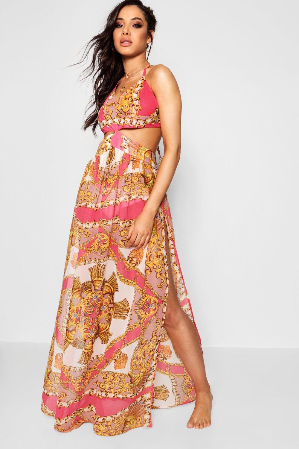 Robe Maxi De Plage Imprimee Echarpe A Decoupes Boohoo