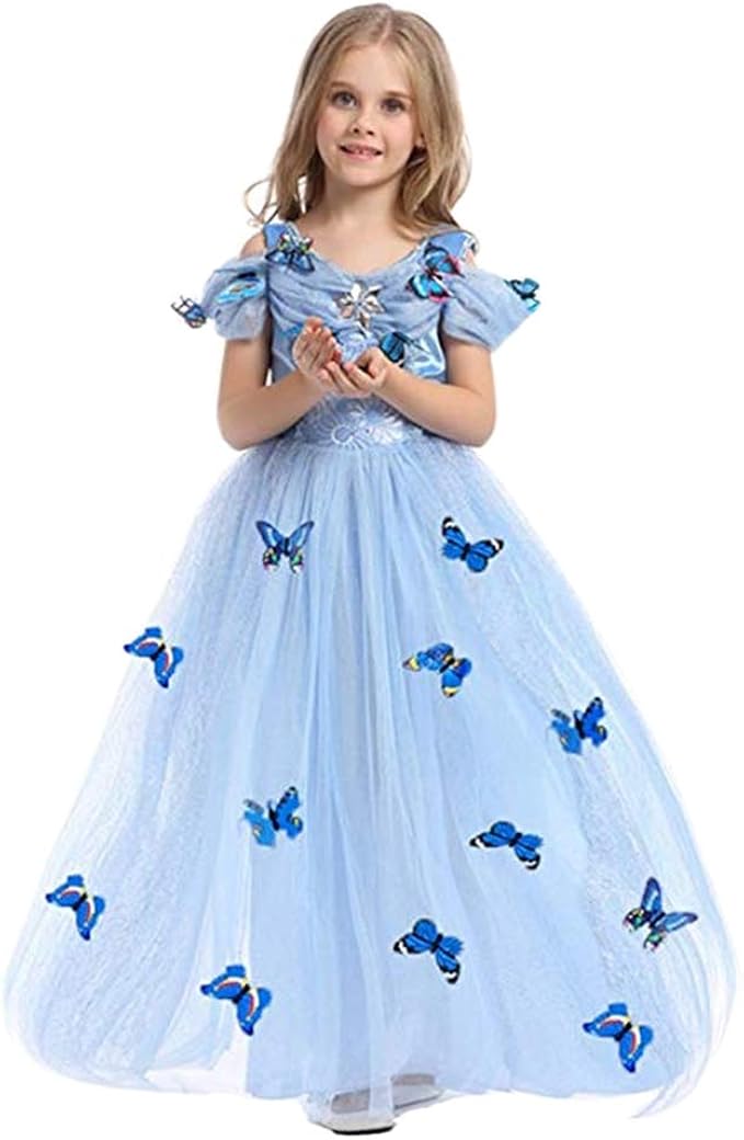 Mallalah Princesse Costume Deguisement Fille Jupe Fille Robe Papillon Bleu Tenue Cosplay Fete Noel Robe Anniversaire Robe Carnaval Anniversaire Fete Amazon Fr Vetements Et Accessoires