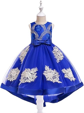 Qz Filles Dentelle Robe De Mariee Enfants Fil D Or Satin Brode Robe De Princesse Pour Pageant Robe De Soiree De Bal D Anniversaire Tenue 3 7 Ans Blue 150cm Amazon Fr Cuisine Maison