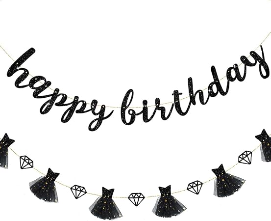 Pinkblume Banniere Happy Birthday Noire Et Strass Noirs Double Face Avec Petite Robe Noire 3d Pour Decoration De Fete D Anniversaire Amazon Fr Cuisine Maison