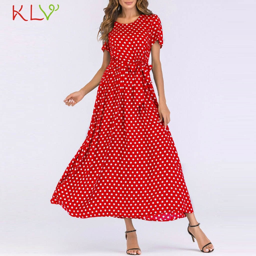 Dress Women Long Polka Dot Casual Elegant Summer Maxi Dress Beach Party Night Dress 2019 Plus Size Shopee Indonesia