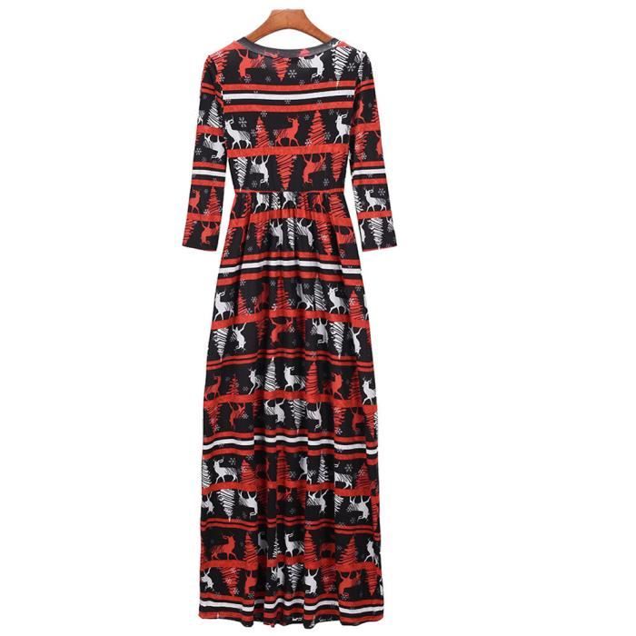 Femmes Robe Longue De Noel Imprimer Robe A Manches Longues Filles Partie Robe De Soiree Longue Maxi Noir Noir Achat Vente Robe Bientot Le Black Friday Cdiscount
