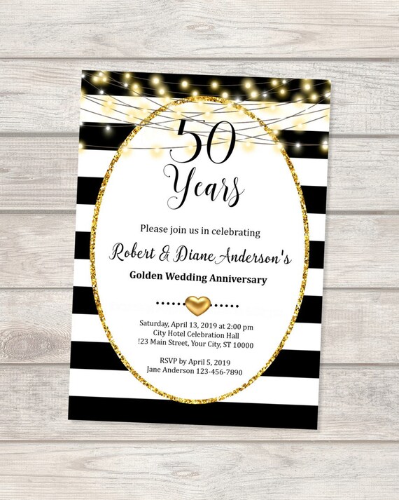 50e Anniversaire De Mariage D Or Invitation Black White Etsy