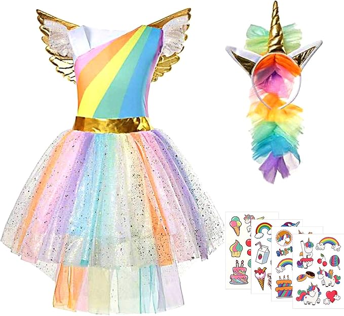 Tacobear Deguisement Licorne Fille Princesse Licorne Robe Jupe Tutu Arc En Ciel Avec Serre Tete Licorne D Or Aile Autocollant Licorne Pour Enfants Cosplay Performance Anniversaire Fete Xl 130 140cm Amazon Fr Jeux Et Jouets