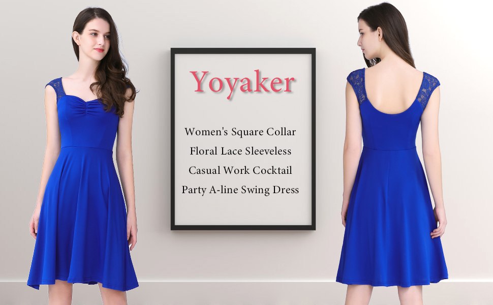 Yoyaker Robe Femme Elegante De Soiree Cocktail Bal Guinguette Casual Classique Pour Anniversaire Mariage Col U Femme Robes