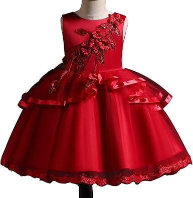 Chenxi Shop Robe Pour Bebe Fille Avec Volants En Dentelle Pour Concours De Beaute Mariage Fleurs Et Perles Rouge Xx Small X Small Amazon Fr Vetements Et Accessoires