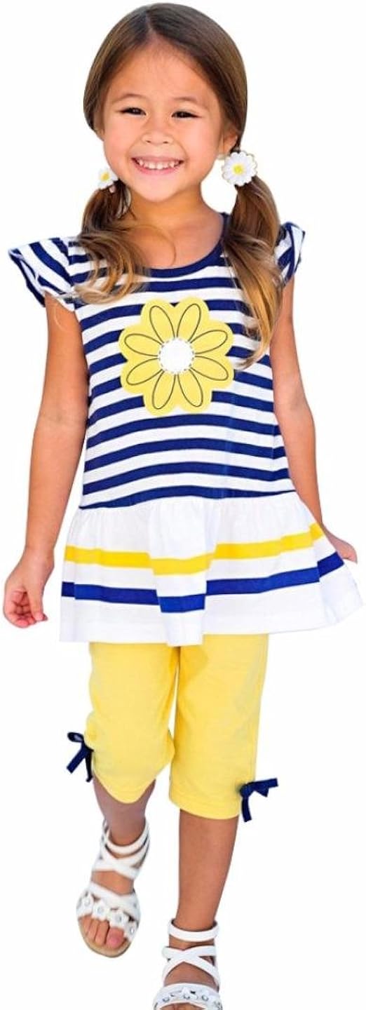 Amlaiworld Ensembles De Bebe Filles Enfants Filles T Shirt A Rayures Florales Tops Pantalon Bow Ensemble Fille Robe Vetements Pour Enfant Fille 1 8 Ans Vetements Bebe Fille 0 24m