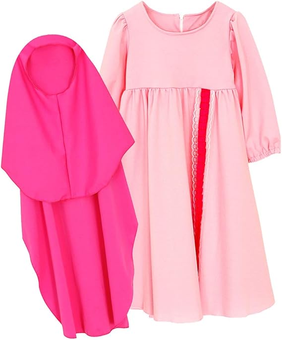 2 7 Ans Robe Longue Musulman Islamique Abaya Rose Avec Hijab Robe Dentelle Manches Longues Pour Enfant Fille Rakuten
