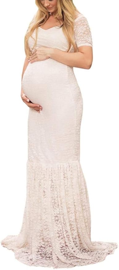 Manadlian Femme Longue Robes De Maternite Enceinte Allaitement Sexy Grossesse Femme Bandeau Manches Courte Dentelle Robe Pour Maternite Photo Shoot Amazon Fr Vetements Et Accessoires