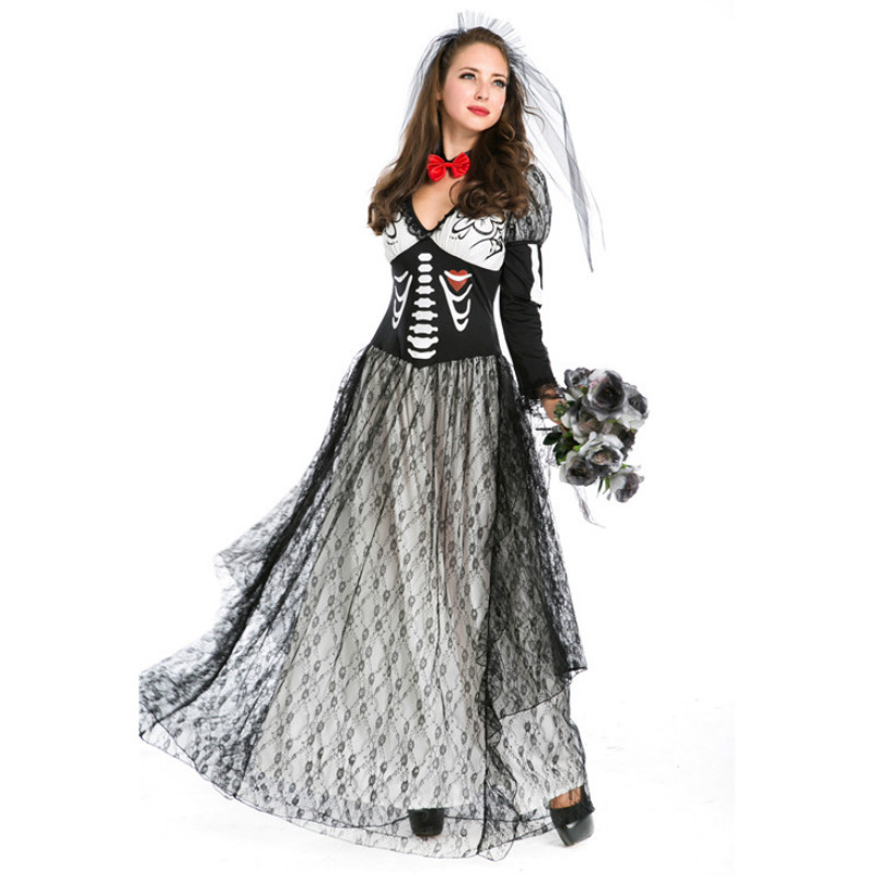 Adulte Femme Halloween Cadavre Fantome Mariee Costume Effrayant Fantaisie Squelette Joker Tenue Longue Dentelle Robe Pour Filles S Xl Grande Taille Aliexpress
