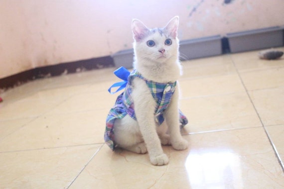 Robe Avec Motif Carre Bleu Pour Chat Et Chien Tenue Persane Etsy